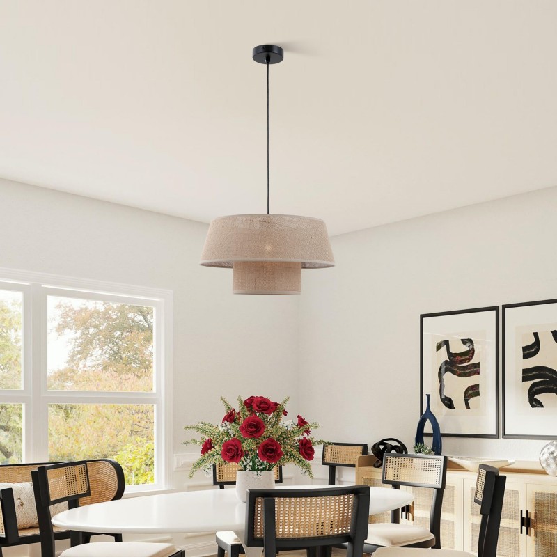 لامپ آویز آشپزخانه کنفی دو طبقه که اخیراً توسط سازنده چینی Strong Lighting ارائه شده است، حال و هوای قدیمی و دنج را به دکوراسیون داخلی می بخشد. طناب مشکی منعطف در طول 1 متر اجازه می دهد تا ارتفاع لامپ را آزادانه تنظیم کنید و از آن به عنوان لامپ آویز یا استفاده کنید. چراغ نیمه فلاش. می توانید آن را بالای میز ناهارخوری آویزان کنید، آن را در گوشه ای از اتاق نشیمن قرار دهید یا حتی در اتاق خواب آویزان کنید. این یک محصول کاربردی نیست، بلکه بخشی از دکوراسیون خانه شما است. چراغ آویز آشپزخانه کنفی دو طبقه دارای دو اندازه مختلف، دیگری کوچکتر به قطر 300 میلی متر است.